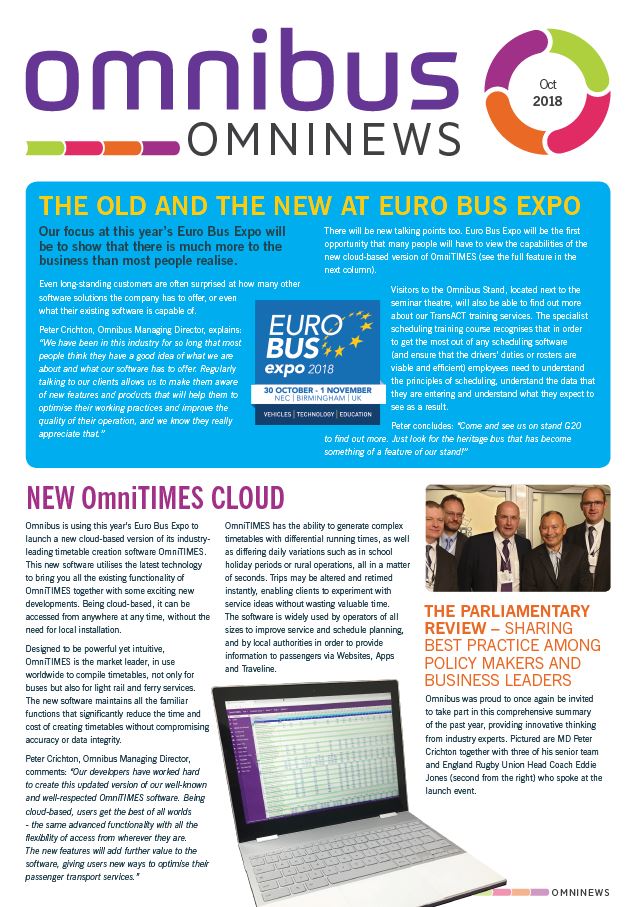Omnibus at Coach and Bus UK All the usual Omnibus software will be on show at the newly re-named Coach and Bus UK at the NEC in October. M [...]